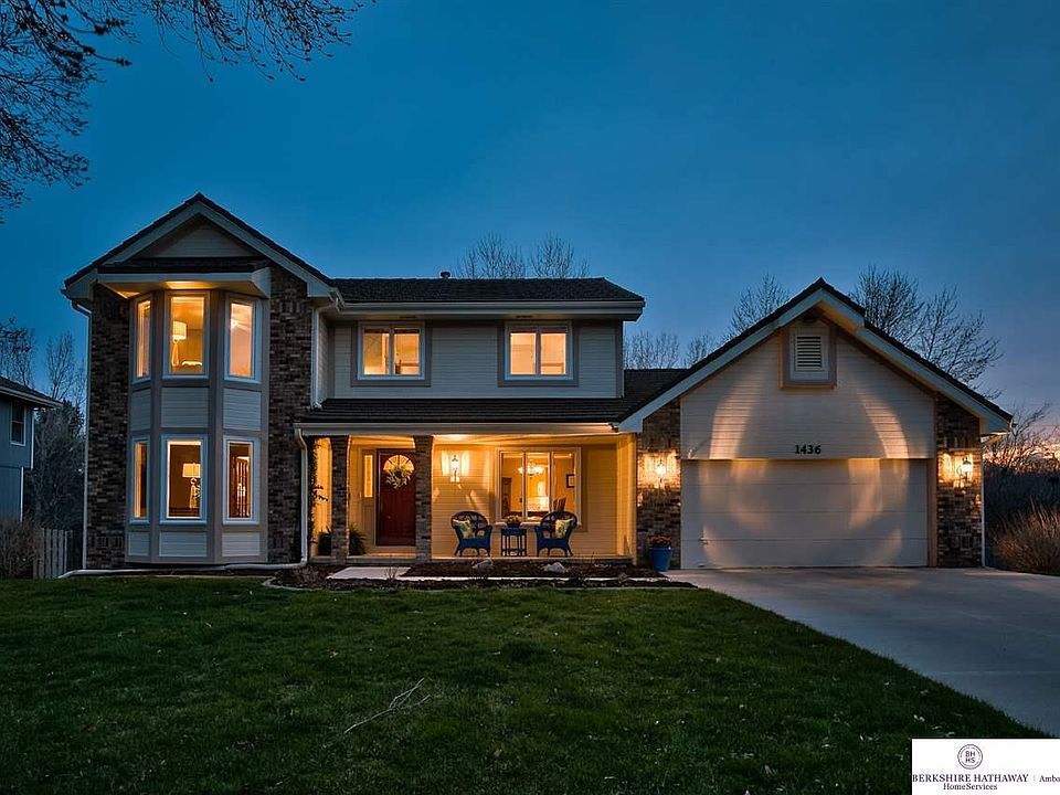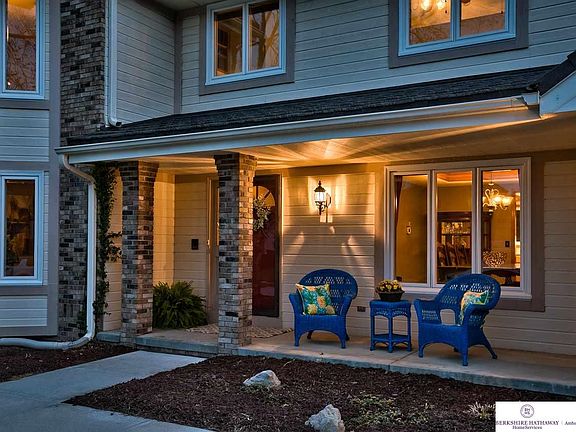 Open Sat. 4/20 1-3pm. Fantastic 2 story walk-out in popular Pacific Hollow with no backyard neighbors! Located on cul-de-sac & backs to Papio Trail. Eat in kitchen has hardwood floors & large walk-in pantry with tons of storage. Spacious family room w/ gorgeous woodwork, brick fireplace, library paneling & wet bar. Formal dining room overlooks front patio. Oversized master bedroom has vaulted ceiling, walk-in closet and whirlpool tub. Lower level has rec room, bath & 5th bedroom/flex room. Covered deck overlooks large flat fully fenced backyard. Stone coated steel roof new 2014. CedarMAX insulated siding & Pro Via windows new 2017. AMA
