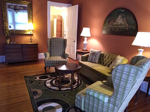FURNISHED apartment in beautiful mansion on Millionaires Row in Old Louisville. One bedroom, one bath - beautifully and completely furnished, right down to kitchen utensils. Second floor, front side of building. Decorative fireplaces, chandeliers, tall ceilings, big windows, and beautiful hardwood. Laundry room on site. Family owned and managed. Smoke free. No pets. References and background check. Hot and cold water, drainage, and garbage collection are provided. Credit and background checks are required. Application fee $45. The usual lease period is for one year - sometimes exceptions are made