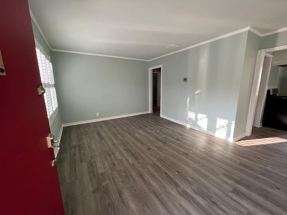 Completely renovated 2 bedroom 1 bath house with a huge yard and your own driveway. Everything has been replaced from floor to ceiling. Kitchen has completely new cabinets, butcher block counters, new sink, new stove and new refrigerator. Bathroom has all new fixtures, vanity, toilet, and tub. There is also washer/dryer in unit. 1 year lease. Small dogs under 20 lbs. will be considered. There will be a 250.00 non-refundable pet deposit and rent will be increased 25.00/month. No smoking. Renter pays all utilities including water. Landscaping is taken care of by owner. 1 year lease.