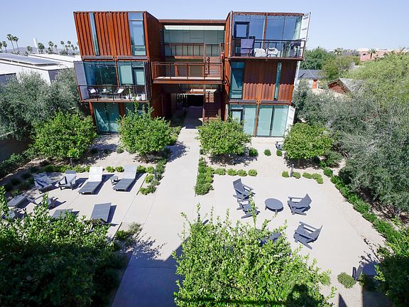 First month free with 18 month lease for qualified applicant with immediate move in .First floor apartment in highly sought after Tempe location near ASU and the light rail. These container apartments have washer and dryer in each unit. Built in closets and cabinetry in the bedroom area and kitchen. Water is included in rent. Hard wood flooring throughout. Fridge with ice maker, built in breakfast bar kitchen seating area. Dishwasher, oven/stove - upgraded insulation , gated community, fire sprinklers, community parking, and onsite security cameras in common area. MUST see.