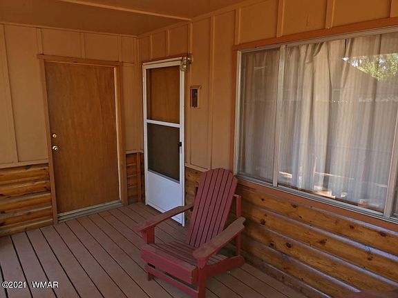 Cabin in the tall pines in the heart of Pinetop. Short walk to Charlie Clarks and nearby shopping. Forest access close by. 1br/1ba with separate den/office. Vaulted ceiling in LR with wood fireplace. Large pantry/storage room. Multi-purpose utility shed. Relax in traditional wood-burning Swedish sauna. Lot completely chain-link fenced with double-gate in rear. Covered deck out front. No HOA.