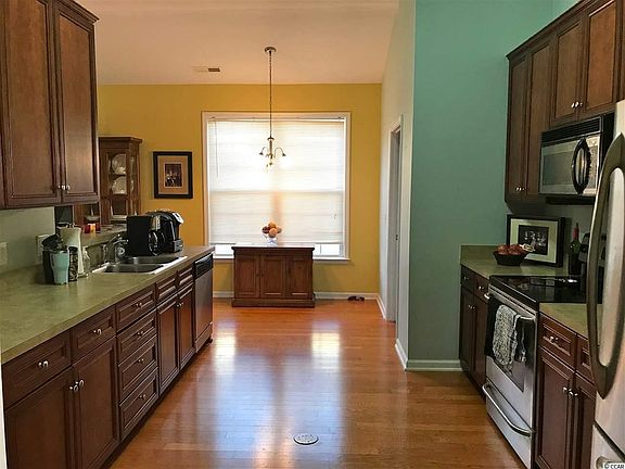 This spacious home located in the established neighborhood of the Lakes at Plantation Pines is a must see. The original/current owner had the home built in 2006, designing this home by combining 3 plans to make this home 4 feet larger all around compared to similar models in the community. Being on a corner lot, it is one of the largest in the development, and is only footstep to the amenity center and pool. To top it off the backyard is fenced in, and both the front and back yard have sprinkler systems in place. When entering the front door you will notice the beautiful wood floors that continue throughout all main living spaces, and the vaulted ceiling gives a bright airy feel to the home. The large kitchen, with 42" cabinets, an abundance of counter space, stainless steel appliances, breakfast bar, and the option for a working island is great for entertaining a large group or just having a quick meal in the attached breakfast nook. Not only do the kitchen appliances convey but also included is a front load Maytag washer/dryer set found in the laundry room/pantry located right off the kitchen. The home flows easily from room to room. The master suite is large at 19x17 giving plenty of space to add a sitting area if desired. The attached master bath boasts a double vanity, walk in shower, and a large walk in closet. With the second and third bedroom offering natural light and nice sized closets, both rooms are perfect for family and guests. The Lakes at Plantation Pines is in a prime location; only 8 miles to the Atlantic Shore, minutes to shopping and dining options, 5 minutes away from McLeod Regional and other medical facilities, and only a few miles from Highway 31 to bring you to all the attractions the Grand Strand has to offer. Make your appointment today to see this gem for yourself!