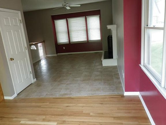 Imagine waking up to a wooded view and bird songs in your ear! Backs up to Ernie Miller Nature Center! Prairie Center Park at end of street. Sure to please with easy to care for ceramic tile on main level. Kitchen and dining have just refinished hardwoods! Double pantry space in kitchen. New carpet in basement and newer carpet in bedrooms. New garage doors. SS sink & stove, newer dishwasher. Bathrooms have newer finishes, main tub/shower redone less than five years. Full bath stubbed in finished basement.