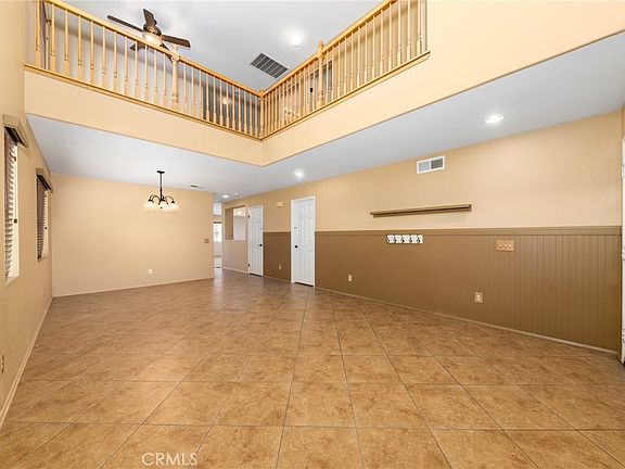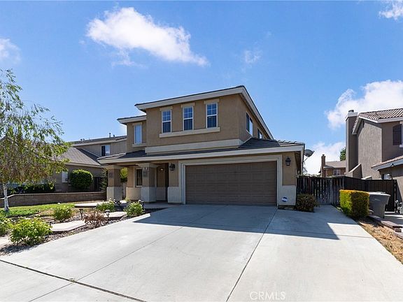 Lovely Oak Valley Greens Home with lots of upgrades. Home features 4 bedrooms, 3 bathrooms with separate formal living/dining room, family room and loft. Open Kitchen & Family room area. Private downstairs bedroom with adjacent bathroom & shower. Just a few of the many features in this home include: gas fireplace, 9' kitchen island, re-stained oak kitchen cabinets with granite counter tops, lots of cabinets with built in desk, stainless steel kitchen appliances, recessed lighting, tile floors down stairs, laminate floors upstairs, surround sound speaker system, raised panel doors with upgraded hardware, ceiling fans, wood blinds, wainscoting and oak banister. Primary suite features a fantastic bathroom and huge walk in closet with custom built-in cabinets, recessed lighting, ceiling fan, built in speakers, upgraded sink/cabinets and a fabulous walk-in shower with standard & rainfall shower heads. Open loft, spacious upstairs front bedroom. Exterior features include lots of hardscape, security screen front door, upgraded rear slider, shade arbor in back yard and shed. Convenient access to the 10 Fwy, Short distance to Elementary, Middle & High Schools, Fallen Heroes park & Noble Creek park. No HOA dues. This is a great place to call Home!