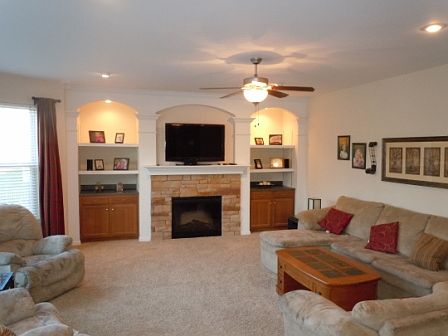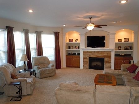 • Living Room Feat: Fireplace, WW Carpet, Bookcases