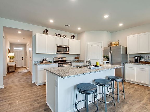 ONE LEVEL LIVING AT ITS FINEST! BACKS TO TREES. Contract full thru and back on market. This home is complete and ready to move in! The Cali - 4 bedrooms 2 baths. OPEN LIVING CONCEPT. This home has STAINLESS appliances, QUARTZ countertops in Kitchen & Bath. INCLUDES REFRIGERATOR AND BLINDS. Sidewalks, playground to come, underground utilities. LOW HOA FEES! Smart Home Package included. Taxes are estimated. Other lot options available. STOP BY THE NEW HOME INFO CENTER at Villages of Hunters Point, 5010 Hunters Village Dr.
