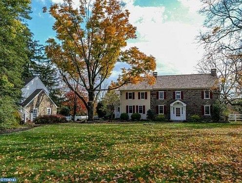 Complete info: http://1436wrightstownrd.IsNowForSale.com - This truly fabulous home & property w/gorgeous long distance views is exactly what one yearns for in an historic Bucks fieldstone. Sitting atop the hill of a 5 acre square 1798 Penn Land Grant with completion of the original home in 1810 (according to a cornerstone), it has been in loving hands ever since. Today there is a beautiful blend of old and new. Reknowned builder Bruce Lesser created the seamless 3 story addition. There is a gourmet kitchen w/ center island breakfast bar, butler's pantry, NEW kitchen aide s/s dishwasher; Sub-zero refrig; GAS cooking; direct access to deck and great views while cooking or dining. The Sunroom/office w/exposed stone wall and built-ins also accesses deck and magnificent views. The 2 story FR w/one of 3 stone fireplaces and custom built-ins is stunning as is the Master Suite w/walk-in closet and full bath that boasts custom oversized 2 person master bath shower with custom tile & marble, glass door, steam-like features and solid brass fixtures. The walk-out finished lower level playroom with new wall to wall carpeting and new half bath is ground level with direct access to patio and, of course, the views. The Living & Dining rooms are totally charming with beautiful pine plank floors, deep windowsills and numerous windows, and each with a striking, original stone fireplace. 2nd floor hall & bedrooms include more exposed beams, another updated bath, plus access to newly insulated attic. 3 car garage has newly finished office/studio above for the perfect quiet getaway. New trex deck w/pergola, fully fenced rear yard area, NEW 50 yr cedar shake roof, and new decking and fence around the in-ground pool & spa. And don't miss the old stone well, hidden courtyard and fountain, and Bessie the cow. Freshly painted exterior, meticulously updated and maintained, this is impossible to reproduce. Location is ideal just minutes from Newtown Boro and I-95 and of course in the award winning Council Rock School District (Council Rock North High School).