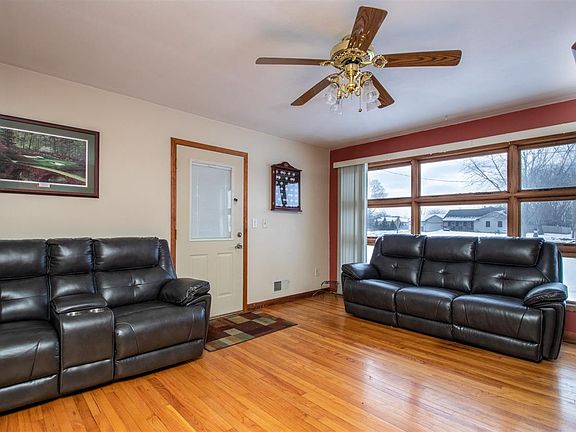 Don't pay another dime in rent! Why would you when you can own this fantastic Mid Century Ranch? You will love the wall of windows in the Living Room as well as the gleaming hardwood floors that run throughout the home. The kitchen has been nicely updated, has stainless appliances, and a moveable dining bar providing a lot of extra storage space. There are 3 bedrooms and 1 bath on the main floor and for extra convenience, a full bath in the basement. You will love spending the warm months enjoying your almost half acre private, fenced yard and just cross the street and you can enjoy walking or cycling on the bike path. Their is plenty of room for cars and toys with the 1 car carport and 2 car detached garage. The home is convenient to all amenities including dining, shopping and has quick I-90 access. A great buy!