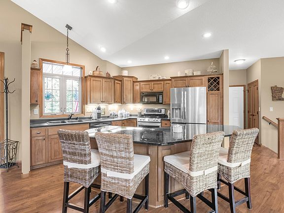 WOW! Incredibly well maintained AND most major expenses updated? Come see this truly rare opportunity to own a custom built home on almost 5.5 picturesque acres overlooking a serene stream. Sit on the back deck and enjoy the abundant wildlife, or cozy up to the added floor to ceiling stone fireplace. Open floor plan bathed in natural light via large windows throughout. New roof, newer main floor LVP flooring and bedroom carpet, a newly trenched high-speed internet connection, built in wet bar with custom cabinets to match the house and a glass-front beverage cooler, front porch has maintenance-free decking, gutter helmet heat, two electric water heaters, a supplemental heating system for energy efficiency, new sump, new well pump, heated garage, heated LL floors, finished the basement bathroom, and much much more (see supplements). Close to Highway 10 and Great River Road, this home combines peace, convenience, and modern living on a private, beautifully maintained lot.