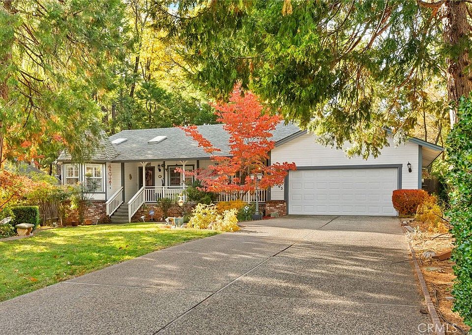 Nestled in one of Magalia’s most desirable neighborhoods, Troy Estates, this picturesque home offers the perfect blend of mountain charm and modern convenience—without the restrictions of an HOA. Surrounded by vibrant trees currently showcasing their fall colors, the property boasts mature landscaping, a delightful covered front porch, and an eye-catching turret-style dining nook. Step inside and experience the cozy ambiance of the living area, where vaulted wood-beamed ceilings and a wood-burning stove create the warm and inviting atmosphere you've been searching for. The country kitchen features granite countertops, stainless steel appliances, and a serene dining nook overlooking the peaceful front yard. The spacious primary suite, located at the rear of the home, offers a walk-in closet, a walk-in shower, and an oversized soaking tub, providing a private retreat for relaxation. Outside, the backyard is a haven for outdoor enjoyment, offering multiple spots to unwind, as well as two handy storage sheds tucked in the rear corner of the property. And with a whole-house generator, you’ll never have to worry about power outages. Make this enchanting home above Paradise your own and enjoy all that mountain living has to offer!