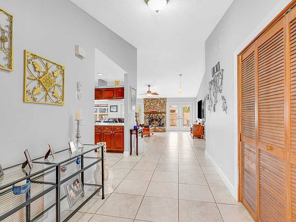 Spacious 3 bed, 2.5 bath Pool home on 1/3 acre pie shaped lot on a Cul-De-Sac in the heart of Wellington. Interior boasts 2327 sq ft, Open Floor Plan, Stone Wood Burning Fire Place, Kitchen w/Quartz counters, Wood cabinets, LG appliances incl LG washer/dryer. Flooring is Tile in living areas & Tile Wood look Planks in all bedrooms.California closets in 2 rooms. Large Primary bedroom offers dual closets & aerated tub.Fans & Crown Molding thruout. Impact French doors w/ built-in blinds lead to patio.Ext features custom lights w/ Ilumenight lighting app, Fire Pit, Privacy Fence, plenty of extra yard space & a large Drive Way. Fenced Pool deck has stamped concrete & metal fence.Storm protection incl Impact Windows & Generator Power Inlet Box. 2nd Fridge w/ice, Ring doorbell & 3 cameras convey.