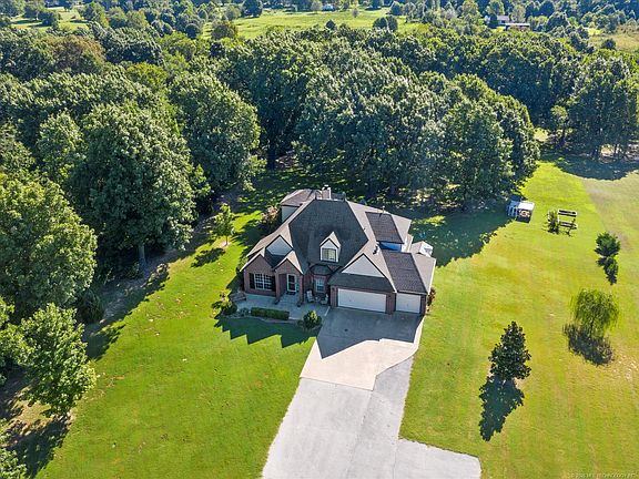 Custom 4 bedroom, 3.5 baths Brick Home w/Media room, Office & Outdoor Kitchen & Fireplace on 2.5 Acres. Beautifully nestled down private Asphalt driveway & Gorgeous Oak Trees. Walking distance to Golf Club of Oklahoma, easy access to Creek Turnpike-Media room incl Surround Sound, Projector & Screen - Outdoor Living Space w/Custom Stone FP - Large Patio w/Gas Grill. Hrdwood Floors - Stainless Steel Appliances, Custom Dry Stacked Stone Walls - Granite Counter tops, 3 Car Tiled Garage - Central Vacuum System