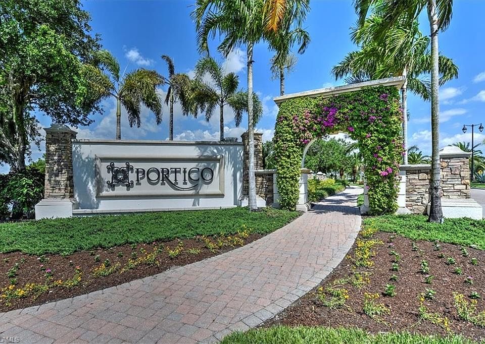 WATERFRONT !! Rare opportunity for a Trevi Model in Portico gated community. This beautifully landscaped home with stone fascia has large open floor plan with 4 bedrooms, 3 full baths, tile on the diagonal, paver driveway, stainless steel appliances, (note: seller has original fridge in garage and will be replaced in the kitchen upon closing), washer/dryer, screened paver lanai overlooks sweeping lakefront view, and fenced lot is large enough to add a pool. Portico features various amenities including a community clubhouse, pool, exercise room, and sports facilities. Please note: seller cannot close before July 31, 2021 because of capital gains time frame. Easy to show with short notice.