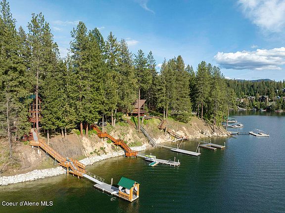 Nestled along the serene shores of Hayden Lake, this captivating waterfront retreat offers the perfect blend of rustic charm. Boasting 88 feet of pristine waterfront, this 3-bed, 3-bath home is a true gem. Step inside to discover an inviting open floor concept, where natural light dances across rich wood floors, creating an ambiance of warmth and tranquility. The spacious living area features a cozy fireplace, perfect for chilly evenings and creating a welcoming for gatherings with family and friends. Open master suite, offers a peaceful sanctuary with its own ensuite bathroom and breathtaking views of the Lake. Downstairs provides a private guest suite. Large deck beckons you to unwind and soak in the beauty of your surroundings. Enjoying morning coffee or hosting a barbecue, this outdoor space is sure to become a favorite spot for relaxation and entertainment. A private dock provides direct access to Hayden Lake, perfect for boating, swimming, and enjoying water activities.