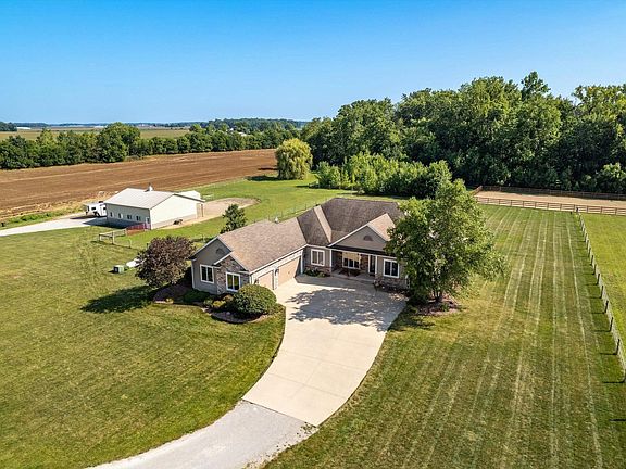 The quiet country setting you've been looking for is right here! Beautiful ranch style home in PHM Schools, 13 acres, inground swimming pool, barn and pastures ready for horses. Custom built in 2007 by Luko, this well kept home features a great room w/ 11' ceilings, sound system, a fabulous arched window w/ view out back, open concept to the kitchen and 3 sided fireplace, loads of natural light. Kitchen has ample counter space, island and stylish glass tile backsplash. Office w/ French doors and open dining room w/ trayed ceiling. Split floor plan offers a spacious primary bedroom & bath, skylight, dual vanity and double closets, and 3 additional bedrooms, jack-n-jill bath and 4th bedroom suite w/ full bath. Finished walk-out basement, daylight windows, game room, exercise area and theater room w/ AV equipment included. Beautiful 16x32 pool and decking, newer retractable cover. Barn is 36x38 w/ water & electric, 2 stalls and space for more, tack room and covered porch provides shade to animals. Fenced riding arena and additional pastures w/ electric fence and run-in to shield horses from weather. Landscaping front and back is fabulous, front porch and comfortable back deck for entertaining, large 3 car garage, quality Anderson windows, home is wired for generator. Take a stroll out back to a nice firepit area. LP gas is for pool heater only. Seller offering 12 month home warranty on the house. Buyer has option to purchase pool coverage.