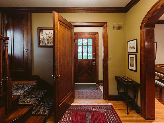 American Colonial Revival era home with all the original woodwork in pristine condition. You will be amazed by the quality and care of this home. Large living room, library, and formal dining room for entertaining which features original walnut mill work. The arches, crown molding, tall base boards, lattice windows, and built-in shelving are some of the stand out features of this home. The kitchen tastefully represents the era and yet has all new appliances. Beautiful oak floors throughout and nine foot ceilings on the main floor. Three fireplaces with one in the large master suite. Full finished basement with built-in theatre and wet bar. The home is supported by 12(A) inch thick poured concrete foundation and basement ceiling. The streets are adorned with a canopy of mature trees.