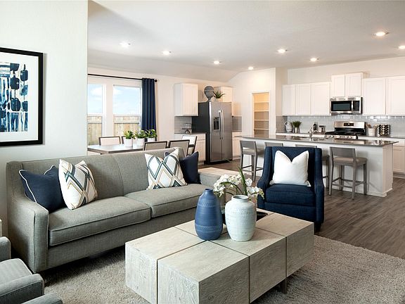 This single-story home is perfect for those who value space and comfort. There are three bedrooms at the front of the home and an owner’s suite in the back with a full bathroom. The open living space is located near a covered patio and includes a versatile retreat that can be used as a den or home office.