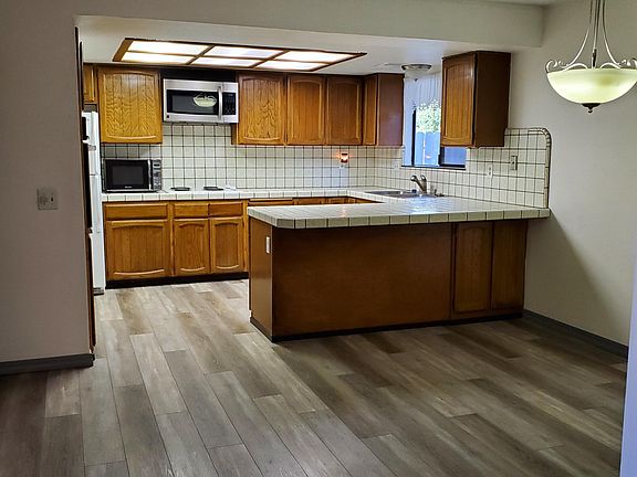 Lovely 2 bd, 2 ba home close to downtown and shopping. Large fenced yard. Woodstove. Central heat and air conditioning. Very clean. New flooring. Large garage with laundry hookups, workbench and cabinets. No smoking indoors. Single family housing. No pets. No subleasing.