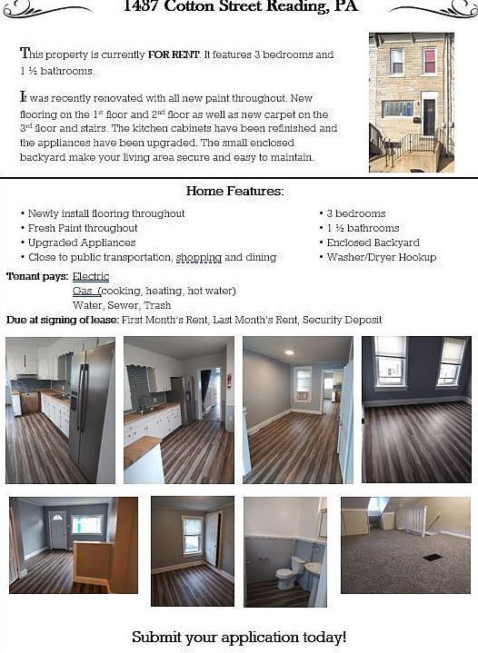 This 3 bedroom, 1.5 bathroom is ready for a move-in on July 1st, 2021. SHOWING IS FOR SATURDAY, JUNE 19, 2021 12:00 to 2:00pm It was recently renovated with all new paint throughout. New flooring on the 1st and second floors and new carpet on the 3rd floor. The kitchen cabinets have been refinished and the appliances have been upgraded. Tenant pays: Water, Sewer, Trash, Electric and Gas Heating: Gas Hot Water: Gas This property does not allow any pets. Washer & Dryer Hookup in the basement Tenant pays water, sewer, trash, gas and electric NO PETS ALLOWED