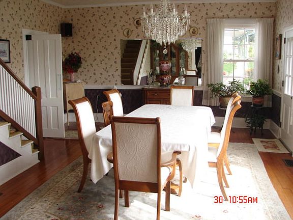 Historic Federal Style home. Originally 1820's. 6 fireplaces, 1/3 A. Koi pond with Koi and fountain. Stream runs through. Unique barn, 3 car two story (600 S.Ft. each floor) garage. Wonderful porches and patio. 700+s.ft. hand hewn pavilion with fireplace. Beautiful 3300 S,FT. barn in 3 stories.