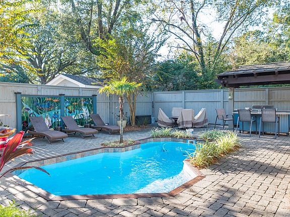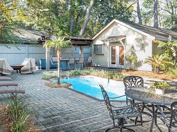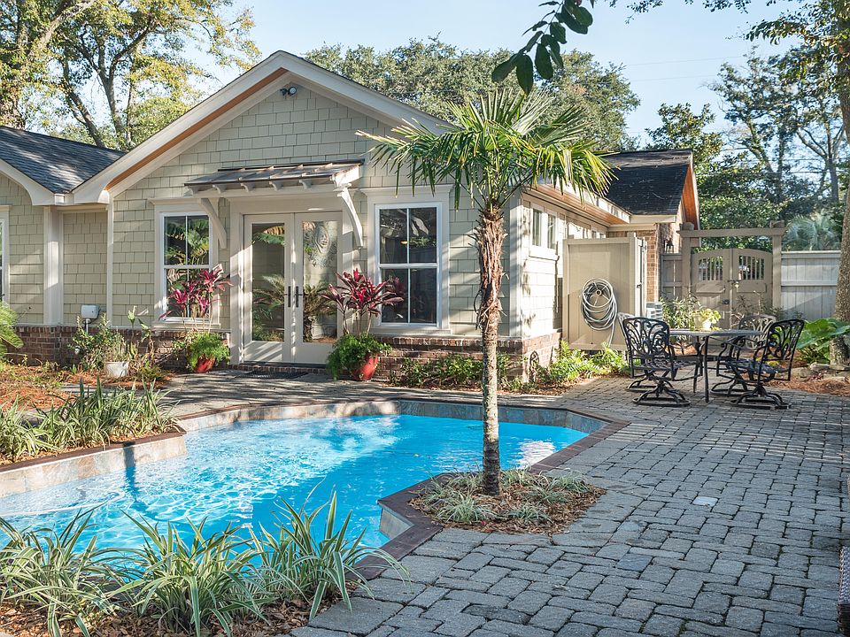 Stunning single story home with saltwater pool and detached garage/workshop/game room in the middle of Old Mount Pleasant! This home features an impressive 3 bedrooms, 4.5 baths, 2 fireplaces, 2 kitchens (counting the game room!). It won't take you long to realize this home is owned and cared for by a master builder/carpenter. You'll love the beautiful irrigated landscaped front yard with ample parking. A gorgeous, brick sidewalk leads to the custom, mahogany glass front door through the foyer to vaulted wood ceilings in the dining room and living room. The kitchen is in the heart of the home with a high-end dual-fuel range and hood, stainless appliances, granite countertops and stainless sink. In the spacious living room you'll find custom mahogany built-ins for storage. From the backwindows and French doors you'll see the spa-like outdoor living area complete with pool, outdoor shower, fire pit pad, lighted stained glass mural, separate lounging areas, a Jenn-Air grill, kitchen sink and covered granite bar with custom outdoor tv cabinet. The one car garage and workshop is full of shelving and has a connected, lockable, covered storage area for bikes, toys and beach supplies . These owners have thought of everything in this beautiful and special home! Easy access to Mount Pleasant Schools, the beach and downtown make this house the perfect home for Lowcountry Living. *Please note: Wando and Lucy Beckham high schools are under a phase-in structure through 2023 based on grade level. If high school location is vital, call the school district to verify
