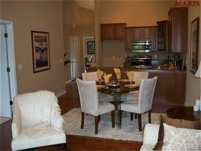 FHA Approved Complex! New Construction without the wait on this EXECUTIVE PENTHOUSE Condo. LAST GARAGE left - don't delay! 2 bedrooms, 2 baths in secure building with elevator access to all floors. Great location at the Page Extension and only minutes to St Louis County. Luxury Master Suite with coffered ceiling in Master bedroom, designer kitchen cabinetry, soaring vaulted ceilings and wood floors in entry, hallway and kitchen. Private 25' covered deck backing to woods, transom windows in baths, private laundry and large, conditioned private storage area. Very spacious 1-level living with LOW condo fees! Gorgeous mansion-inspired elevations, professionally landscaped common areas, sprinkler system and remote electronic front door add to the endless amenities of life at The Charleston! Estimated completion 30 days to move in! Listing Agent related to Seller.