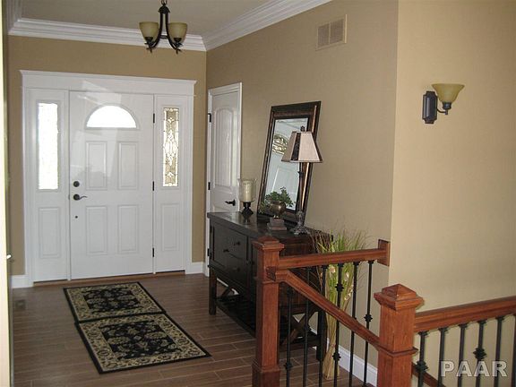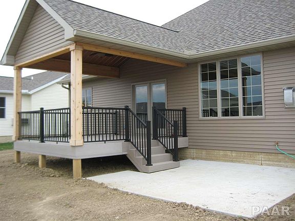 A beautiful quality built home by Worthington Builders. 6.8' x 10' entry foyer opens to great room. 3 bedrooms & 2 full baths. Crown molding. Dream kitchen with maple cabinetry, under cabinet lighting, quartz counter tops, breakfast bar and walk in pantry. Main floor laundry with utility sink. Glass door from dining area to covered deck with outlet for TV. Stamped patio. Master bedroom with custom designed walk in closet, double basin vanity and tiled walk in shower. Home was built on existing foundation. Storage shed with light and electrical outlet.