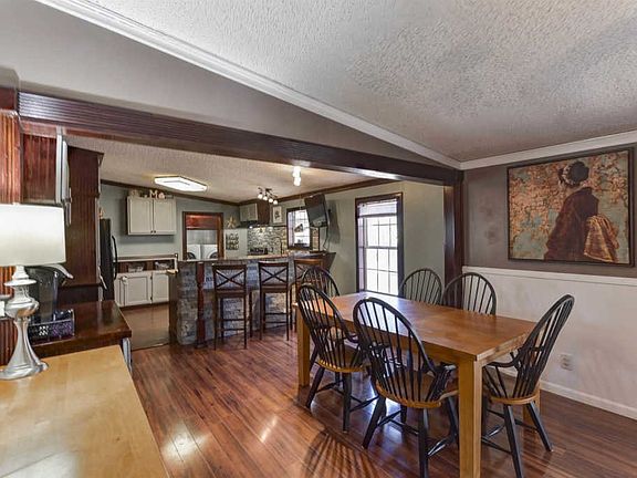 GORGEOUS, MOVE-IN READY HOME ON ALMOST 2 ACRES! This 3 bedroom/ 2 bath home is full of beautiful features and updates! Natural light spills throughout the flowing layout as you move with ease from one room to the next! The large living room features a cozy stove fireplace, gorgeous exposed beams and open access to the dining room and kitchen! The spacious and bright kitchen features a beautiful backsplash, updated appliances, bar with seating and tons of counter and cabinet space making cooking a breeze! The owner's suite offers a huge walk-in closet and spa-like en suite with double vanity and large walk-in shower! Each additional bedroom features ample closet space and lovely shared full bath. Enjoy relaxing or entertaining with family and friends on either the covered porch or large deck! This unique property offers endless possibilities for hobbies or homesteading!