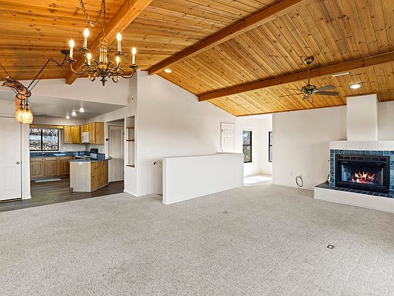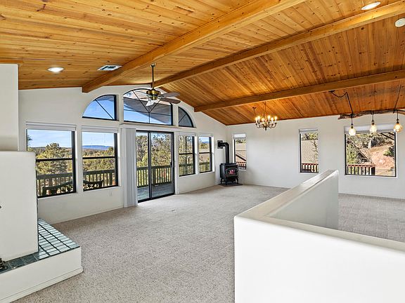 Beautiful views from this great home in an Alpine Heights cul-de-sac! This 3 bedroom, 3 bathroom home features 2,050 sq. ft., a family room, a 1 car garage, a carport, a high-efficiency water heater, and the roof was replaced in October 2023. The living room has knotty pine vaulted ceilings, large windows for letting in natural light & the views, and a wood fireplace as well as a gas stove. The kitchen has granite countertops, plenty of storage with 2 pantries, and a breakfast bar. The master suite features a walk-in closet, 2 sinks, and a walk-in shower. The backyard has a patio and plenty of mature landscaping for privacy. Your favorite spot will be the covered deck perfect for entertaining and enjoying the views of Rim Country.