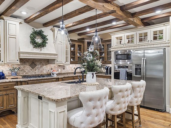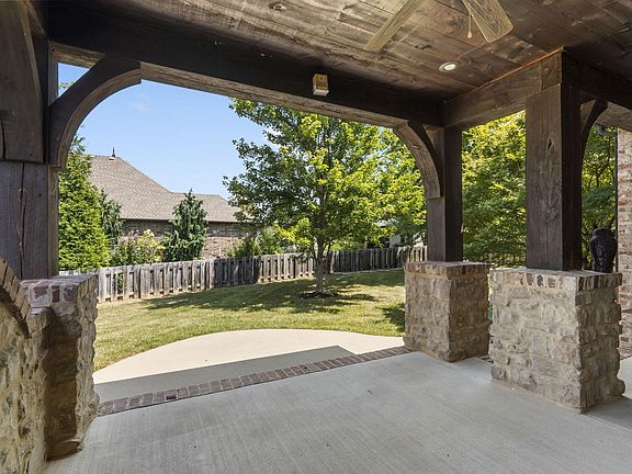Discover the charm of the Villages at Wicklow, the community everyone dreams of joining! This exquisite all-brick home offers luxury at every turn, from its immaculate landscaping to its stunning interior details. As you enter through the custom arched front door, you'll step into an open living space filled with beautiful hardwood floors, bathed in natural light, and anchored by a striking floor-to-ceiling brick fireplace.The kitchen is a true showstopper, featuring a grand island, exposed wood beams, granite countertops, and top-of-the-line finishes. With stainless steel appliances and a built-in credenza, this space is sure to inspire your inner chef! The primary bedroom and bathroom provide a perfect retreat, offering dual vanities, a soaking tub, a walk-in shower, and a spacious walk-in closet with private laundry access.Whether you need a space to work or unwind, the dedicated office, complete with its own fireplace, is ideal for any endeavor. With three additional bedrooms, there's plenty of space for family and guests alike. Step outside to the covered back porch, where you can create the perfect outdoor oasis with seating, string lights, and a fire table - a perfect spot to enjoy fall evenings.Located in the highly regarded Nixa School District, home of the Eagles, this community offers a vibrant lifestyle with festivals, parades, and a welcoming atmosphere that truly feels like home. Don't miss the chance to experience this incredible home in person - call today to schedule your private showing!