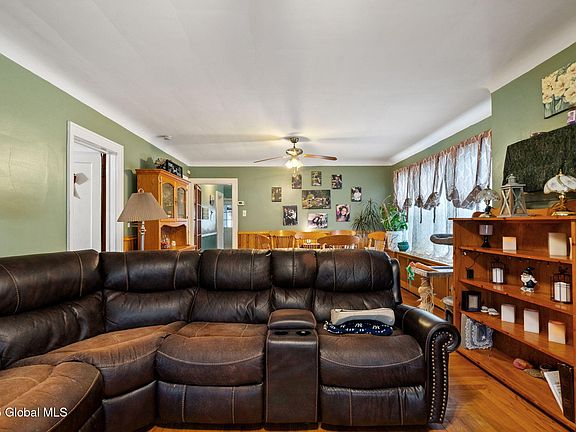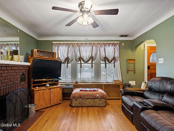 This bungalow features a large living room w/ a wood urning frpl, dining area w/gorgeous wood floors, a renovated kitchen w/an island w/a granite countertop, a tile backsplash, updated vinyl flooring & a mudroom leading out to your huge fenced in backyard. The 1st floor boasts 3 bdrms & full bath, there is a finished space in the bsmt, & a large primary suite upstairs w/a sitting room, tons of closet space & a half bath. The backyard is fully fenced & features a large covered patio & hot tub. Additional features include a 2 car garage w/bonus space upstairs, a newer roof, hw tank, boiler, shed & windows. Just 5 mins to DT Schenectady, Golf, the Casino, and walking distance to schools!