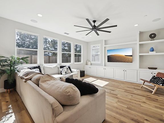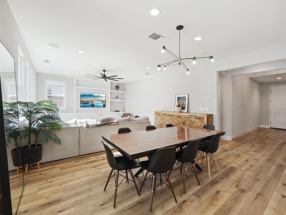Welcome to this stunning newer-built 5-bed 3-bath single-family home effortlessly combines sleek modern design with the warmth & comfort of a traditional home. The main level boasts an open concept layout, ideal for seamless indoor-outdoor living. Hardwood floors & ample light throughout. The contemporary kitchen features a granite island, stainless steel appliances & a spacious walk-in pantry. Also on this floor, a full bathroom & a versatile extra room, perfect for a home office, gym, or guest bedroom. Upstairs, the primary suite is a private retreat, offering an ensuite bathroom with dual vanities, a luxurious tub, & standing shower. Three additional bedrooms plus a loft, each filled with natural light & new carpeting. Every bedroom includes modern ceiling fans- ideal for warm summer days. Outside, the backyard is both environmentally conscious & low-maintenance, featuring pet-friendly artificial grass. It offers plenty of space for activities & entertaining. The outdoor California room is perfect for hosting & the built-in gas fireplace ensures you can enjoy the space year-round, regardless of the weather. Installed with solar panels and 50-amp 220-volt EV car charging. This home offers the perfect blend of modern living & natural beauty.
