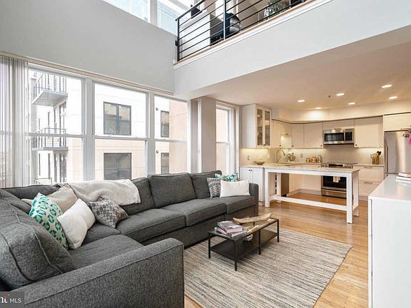 Offer deadline: Tuesday 2/26 at 2:00pm. Fantastic 2 story, 2 bed, 2 bath light filled condo facing 3 sides with open-layout, parking and storage in a prime Logan Circle location. Main living area has open kitchen looking onto double-height ceilings in living/dining area. Den/ office area with custom builtin desk and cabinets, located upstairs on the entry level.