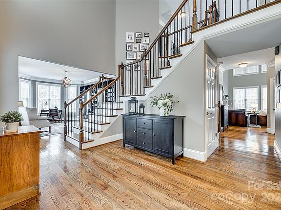 Nestled in the Lake Wylie waterfront community of Water Edge, this brick home sits on a spacious 1.26-acre lot and offers an unfinished HEATED basement, adding 1,157 sq ft to the living space. The basement is a blank canvas, ready for your creative touch, with electrical and PLUMBING already in place for an additional bathroom. Enjoy the charm of the tree-lined street and the welcoming front porch. Discover hardwood floors, a well-appointed library, Viking appliances, granite countertops, and quality hickory cabinets in the kitchen. The 2-story great room features a cozy corner fireplace. Upstairs, the primary bedroom is a retreat with a vaulted ceiling and a renovated bathroom featuring a freestanding bathtub and fireplace. Three additional bedrooms and a versatile loft complete the upper level. There is abundant storage throughout, a fenced yard, and a seasonal view from the community's Pool/Clubhouse overlooking the lake.