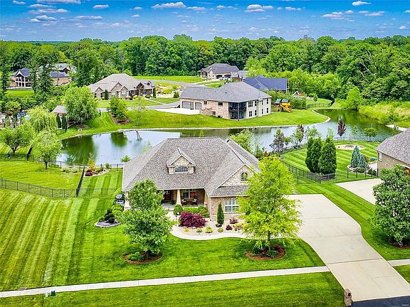Many homes make you smile when you walk in, but only a few will take your breath away. Welcome to 1437 South Clinton! Located in the OFallon school district, this stunning walk-out Ranch is on a 1-acre site that backs to a private lake. The large lot provides a generous setback from the street, a 3-car side-entry garage, and an inground pool. The gently curving walkway leads to the craftsman-inspired front porch where youll enter the home through the arched double doors. Step inside to the vaulted, wood covered entry foyer and your eyes are immediately treated to elegant beauty. The split-bedroom floor plan creates an open common area that is appointed with a lengthy list of stylish upgrades and architectural features. Theres no need to compromise if you have high standards for details. Do some online browsing of the gorgeous photos, detailed floor plan, and even take a 3D virtual tour, but when youre ready to treat yourself to something specialschedule an in-person showing.