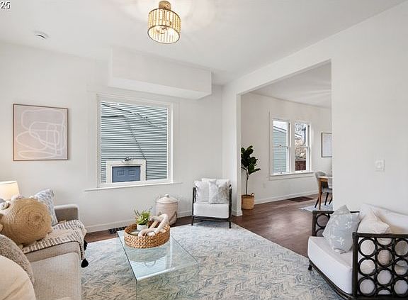 Charming PDX Foursquare that's packed with updates and charm! The cozy front porch invites you into the house where you'll find an open floor plan & original refinished wood floors throughout. Modern updates in the kitchen with a butcherblock island and countertops, tile backsplash, all new appliances, sink, faucet and white kitchen cabinets. Upstairs you will find 3 bedrooms and 2 full baths. Each bathroom has tile flooring, new toilets, lighting & vanities. The large, unfinished basement provides 600 sq. ft. of storage space, or it can be transformed into additional living space to suit your needs in the future. There is a long driveway on the side of the house with lots of parking and the backyard is spacious with new landscaping and a nice deck for outdoor summer barbecues. With its mix of old-world charm and modern convenience, this home is a must-see. Schedule a tour today and discover all that it has to offer! [Home Energy Score = 2. HES Report at https://rpt.greenbuildingregistry.com/hes/OR10236899]