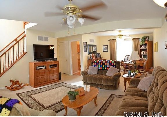 Appealing one owner home on wooded setting backing to environmentally protected farm. This well maintained 2 story boasts a newer high efficiency furnace, air conditioner, and water heater, new rear and East side vinyl siding, roof, storm door and dining room window. You'll appreciate the updated baths with granite counter tops. The well designed kitchen has newer appliances and opens to the breakfast bay with access to the deck & expanded patio below. The master suite features a walk in closet and private bath with garden tub, separate shower and double granite vanity. The unfinished walk out lower level has rough in plumbing for a future bathroom and additional finished space plus ample storage. The 2 car garage features a 4 foot extension and opener with remotes. Tucked near the back of the subdivision, the home is on a low traffic street. Other amenities include a humidifier on the furnace and the refrigerator is included. www.scottafbhomes.com Call 618.531.4926 (Susan) to see.