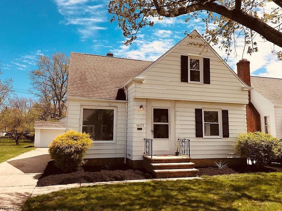 Welcome to 1437 Sunset Road in Mayfield Heights! This home has been renovated & located on quiet street close to shopping, amenities & top-rated Mayfield school district. New vinyl double hung windows & newer roof. Living room has huge picture window & natural lighting. Dining room's large window overlooks backyard. Kitchen features new cabinetry with soft close doors/drawers, granite countertops, subway tile backsplash, garbage disposal & brand new stainless steel appliances. Hall leads to 2 bedrooms & full bath w/ceramic tile floor, tub surround, updated fixtures & new vanity with subway tile. Oak flooring meticulously refinished to original beauty extends thru-out 1st floor & oak staircase also refinished. Large master suite features wood floors, original mid-century built in dressers & storage plus a sitting area &/or home office setup. Master bath updated w/100% waterproof vinyl plank flooring & new fixtures. Shower has floor to ceiling subway tile. Basement is dry & the possibilities are endless for this 800+ square foot unfinished space! New glass block windows offer natural light and there are light fixtures and outlets already run throughout the area. Two basin utility sink with a separate shower area. Updated electric panel and hot water tank. Furnace and central air system recently serviced. 2-car detached vinyl sided garage w/new concrete floor. Rear yard stretches on behind the garage. Point of sale inspection compliant. Don't let this beautiful home pass you by!