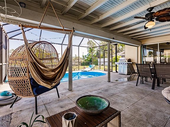 **BOATERS TAKE NOTE: Less than 10 MINUTES to open water! ** Jump on your boat and live the high life! MINUTES TO OPEN WATER from this FULLY RENOVATED TURNKEY POOL GULF ACCESS HOME - MINUTES TO OPEN WATER. Walk into the bright mid-century modern-style entrance and be wowed by the wall of glass doors overlooking the pool and canal. This home has all the bells and whistles. Fully updated brand new kitchen. Brand new appliances. Brand new guest bathroom. Private master ensuite with walk-in closet and private sliders to patio area. The backyard is a treat - with pool, firepit and bocce ball pit, a shed for the kayaks, and large fenced yard for pets and kids. Pool Resurfaced (2023). SOLAR PAYS THE ENTIRE BILL. Whole home solar (2019) fully paid off and feeds the LCEC grid - meaning they give YOU a check every quarter. HVAC and new ductwork in 2019. 10K Boat Lift & Captains Walk makes boating the quick trip to the river a breeze. Hybrid Water Heater 2019. Fully Paid Assessments. Fully Turnkey so all you need to bring is your toothbrush! Around the corner Downtown Cape Coral for all the fun community events - and some of the best restaurants in town! Keep an eye on the new Bimini basin project opening up around the corner... bringing more shopping, restaurants and parks nearby.