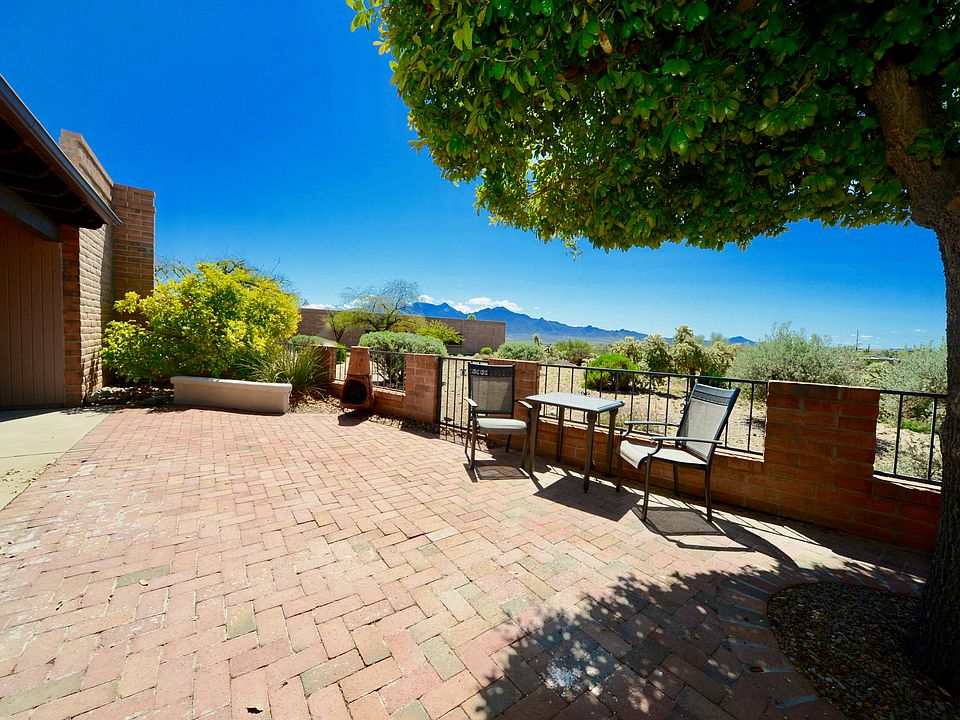 * VIEW VIDEO: https://az.movinghometour.com/22009815_Tucson%20MLS * Great 2 bed +den Canoa HIlls Town home with a view, has been a successful rental and comes FULLY FURNISHED! Open and bright living room with a gas beehive fireplace. Kitchen has newer SS appliances, and pull outs in the pantry. Nice view of the mountains from the covered patio as well as open desert space to enjoy the wildlife. The back patio has a storage shed with, not only the new hot water heater and water softner, but a utility sink and storage shelves. This home has a new hvac, ample storage space in the 2 car garage, is very clean and well maintained. Just need to bring your favorite stuff and you are living the good life.