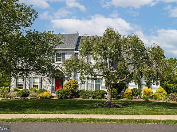 Backing to woods in Jamison Hunt on almost an acre of lush scenery, is a beautiful, well-maintained colonial with lots of charm and curb appeal. Enjoy the inviting 2-story foyer adorned with gleaming hardwood floors and turned wood staircase. Detailed millwork including wainscotting and dentil styled molding ornament the entrances into the spacious formal Dining and Living Rooms found on both sides of the neutral palette foyer. With a fantastic open layout, the neighboring Gourmet Kitchen with ceramic tile flooring features rich toned cherry cabinetry, a beadboard accented island with seating, granite countertops, walk-in pantry, and a convenient built-in desk. Adjacent is a restful, light-filled Gathering Room boasting an impressive stone surround gas fireplace nestled between a set of arched windows allowing natural light to flood into this room. An All-Seasons Room with new dark hued floors offers wonderful views of the wooded landscape from its three walls of windows and access to a maintenance-free staircase leading to a lower covered level entertaining area and into the large rear yard. Completing this main floor is an oversized Mud/Laundry Room and half bath. Upstairs, enter through double doors to the spacious Primary Suite with a sizable walk-in closet outfitted with professional organizers, an open and airy bath with soaking tub, dual sink vanity and walk-in shower with corner seat. Three additional bedrooms share an updated full hall bath. One of the bedrooms can be accessed via the primary suite or hall, offering wonderful versality, such as a nursery/sitting room. Enjoy entertaining on the lower level of the home in the fully finished walk-out basement with recessed lighting, a full bath, amazing storage and generator! Don’t forget to take advantage of all the amenities the community has to offer such as the tennis and basketball courts, playground, and the walking/bike trail that lead to the neighborhood park and elementary school. Located in the Central Bucks School District and close to Doylestown and New Hope for shopping and dining, this home has everything you need.
