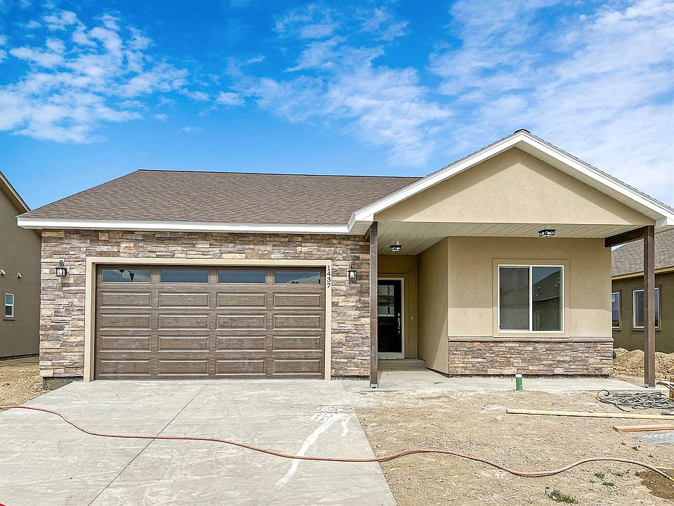 Estimated completion of June 16, 2022, for Ridgline Homes' Rainier model. Open concept living, dining and kitchen with vaulted ceiling and kitchen island. All appliances including washer and dryer included. Cabinets with soft close doors and drawers of rich maple tuffle stain, granite countertops in kitchen and both baths. Durable laminate flooring throughout with tiled baths. 9ft ceilings throughout, hand-trailed textured walls, bullnose corners, nickel fixtures, LED lighting, forced-air gas heat, central air conditioning. Two-car garage with openers and keypad entry. Stucco, stone exterior. Seller, Ridgeline Homes, will credit $4000 and Academy Mortgage in Montrose will credit $1000 (for a total of$5000) in seller concessions towards buyer's closing costs, prepaid items, or interest rate buy-down as allowed by Federal law and lender, if buyer's loan is closed through Seller's preferred lender, Academy Mortgage in Montrose. (Color selections indicated may change.)