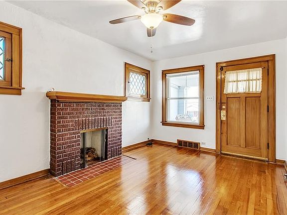 This house has everything you need to move right in! Beautifully refinished wooden floors shine with ample natural light in this ranch style home. The living room features a brick fireplace and two decorative leaded glass windows on either side of the hearth. This cozy layout has two bedrooms on either side of the bathroom and an adorable dining room with built in shelves flanking either side of the doorway. The kitchen overlooks the backyard that has a small patio and fenced in area - perfect for a small dog. The basement is not only spacious with high ceilings, but the furnace and AC units are brand new! What are you waiting for?