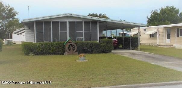 Axtive with contract HOP, SKIP AND JUMP TO THE FROMT GATE. FULLY FURNISHED HOME AND PRICE TO SELL!! LIGHT AND BRIGHT NICE FLORIDA ROOM IN FRONT OF THE HOME SITTING ON A QUITE STREET, HURRICAIN SHUTTERS THIS HOME IS PREFECT FOR A SNOWBIRD HOME OR A COUPLE