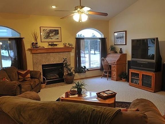 Immaculate custom stucco rancher on 5 gorgeous acres with tall pines and lush meadow. Main level living at it's best! NEW GRANITE COUNTERS IN KITCHEN!!!*Open floor plan w/ vaulted ceilings, wood floors,sunroom, finished walk out bsmt,main level office, large eating nook and formal dining, large Mstr BDRM w/ 5 peice bath, media room,large family room* pool table AND hot tub included too!* Newer barn and fencing! RV PARKING, beautifully landscaped yard with large private patio.