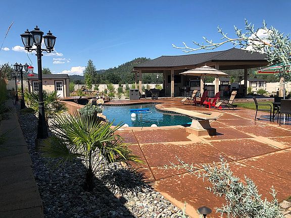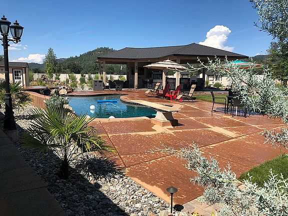 Amazing Executive Home featuring an open concept floor plan, 4 bedrooms, 3.5 bathrooms, Salt water Pebble Sheen pool and located just minutes to Shasta Lake. Flawlessly detailed inside and out with 2x6 walls, 10 & 11' ft ceilings, desirable split floor plan, rich Travertine tile with radiant heat, large Chef's kitchen w/Granite countertops, built-in hutch and wine fridge in dining area, huge outdoor covered kitchen with half bath and outdoor shower. Resort like setting in huge enclosed back yard with fountains and waterfall.