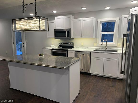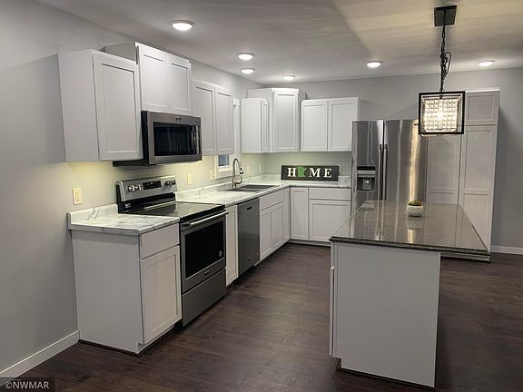 ''Hidden gem'' comes to mind when you look inside this completely remodeled home just a couple miles south of Thief River Falls. The kitchen belongs in a magazine, it's absolutely amazing and setup to entertain with the open floor plan to the living area. This home is basically new as it has been taken down to the studs and all new wiring, plumbing, and Sheetrock have been installed throughout the interior of the home. Other updates include new flooring, doors, trim and a modern paint scheme. Now, the bathrooms. They have all been redone with custom tile work, amazing vanities and under-mount sinks, tile surrounds and a phenomenal walk in shower in the master bedroom. There's even a separate living area in the basement, which is where the new furnace is located, as well as the ....