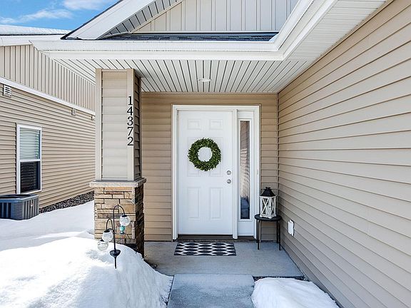 This is your chance to own a gorgeous one level, open concept, detached townhome with vaulted ceilings on a premium private lot. Woodland views grace the front and back of this home located on a quiet cul-de-sac street. These homes rarely are for sale and there's so much to love. Kitchen boasts a stunning custom backsplash, granite counters, center island, SS appliances, open shelving, and a large pantry. Luxury plank flooring throughout. Master BR has an ensuite and walk-in closet. Comfort height vanities in both bathrooms. Beautiful windows with custom blinds fill the home with natural light. The sunroom opens to a private patio. Built in 2018 with high end finishes and so well maintained it's like new construction at a fraction of the cost. Low $165 monthly HOA fee. Amazing location near Hwy 10, Downtown Elk River, restaurants, shopping, clinics, lakes, golf courses and highly rated schools. Check out highlight sheet in supplements for more great features!