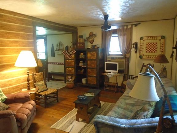 Weekend retreat or year round living, for this charming 2 bedroom, 1 bath river house! Always dreamed of a place on the river? This one has a new roof, new floors, some furnishings and decor to stay, wood burning stove as well as gas heater! This cabin is cozy and inviting, with patio area, storage shed, fire-ring, and front deck, all on 1.75 acres with a beautiful river view!
