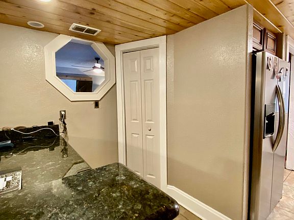- Blinds, Breakfast Bar, Laundry Closet, Pantry, Wood Cabinets, Counters-Stone